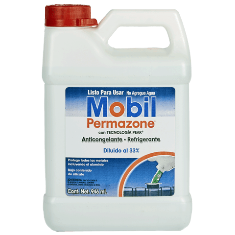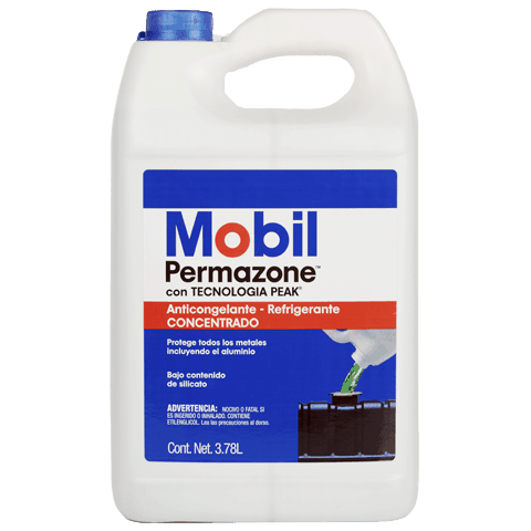 Mobil Permazone es un anticongelante convencional color verde que contiene inhibidores que proporcionan protección contra la congelación, el sobrecalentamiento, la herrumbre y la corrosión. Mobil Permazone cuenta con una fórmula universal de bajo contenido de silicato para utilizarse en todo tipo de camiones ligeros que protege todas las superficies metálicas del sistema de enfriamiento, incluyendo aluminio. Cuando se utiliza en aplicaciones de servicio pesado, se requiere la adición de un aditivo refrigerante suplementario (SCA, por su sigla en inglés) separado.